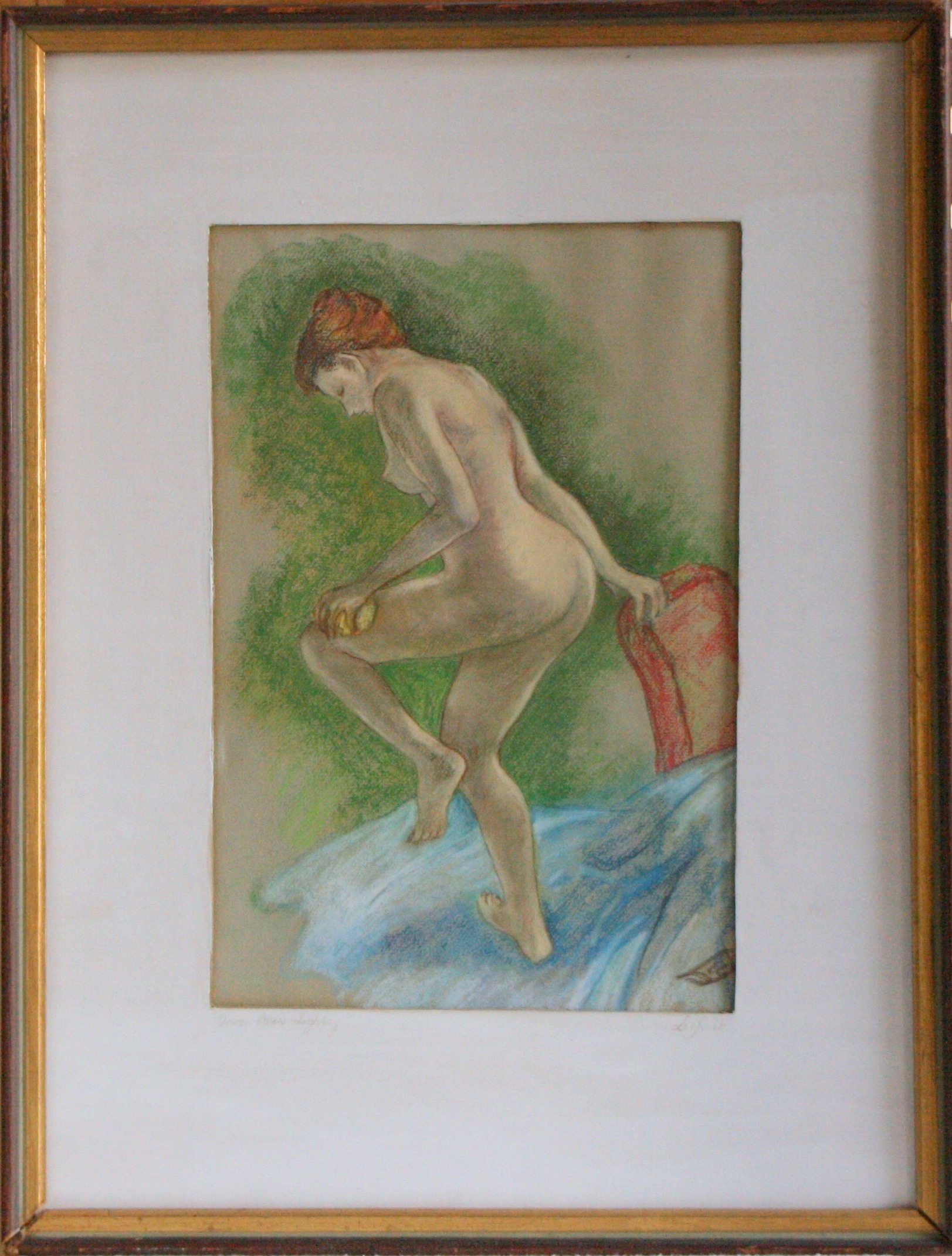 My grandmother loved the figure; however, this is the only known example of her figure drawing. Being the only girl in the family, I suspect my mother was the model (though it’s hard to tell, as the face is in that 60s style, with the upturned pixie nose – definitely not my mother’s nose!).